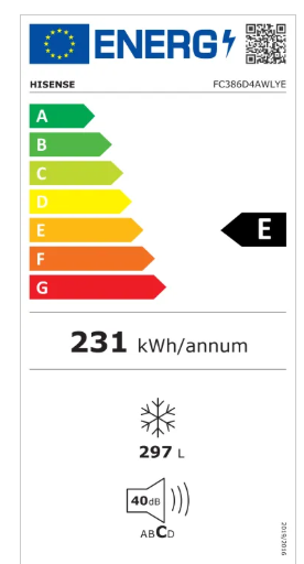 • Ετήσια κατανάλωση: 231 kWh / έτος