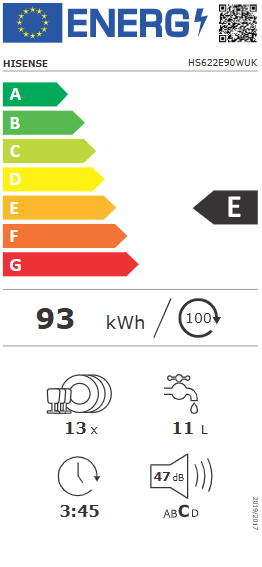 Κατανάλωση ενέργειας: 0,93 kWh ανά κύκλο (93 kWh / 100 κύκλους).